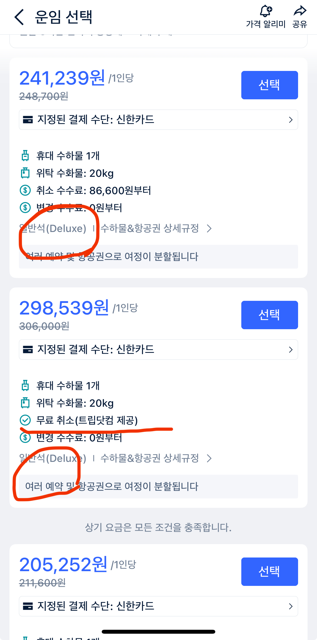 트립닷컴에서 수하물 포함 옵션을 선택하면 ECO 등급에 수하물을 추가한 가격과 DELUXE 등급의 가격이 비슷하게 나오는 경우가 있습니다.