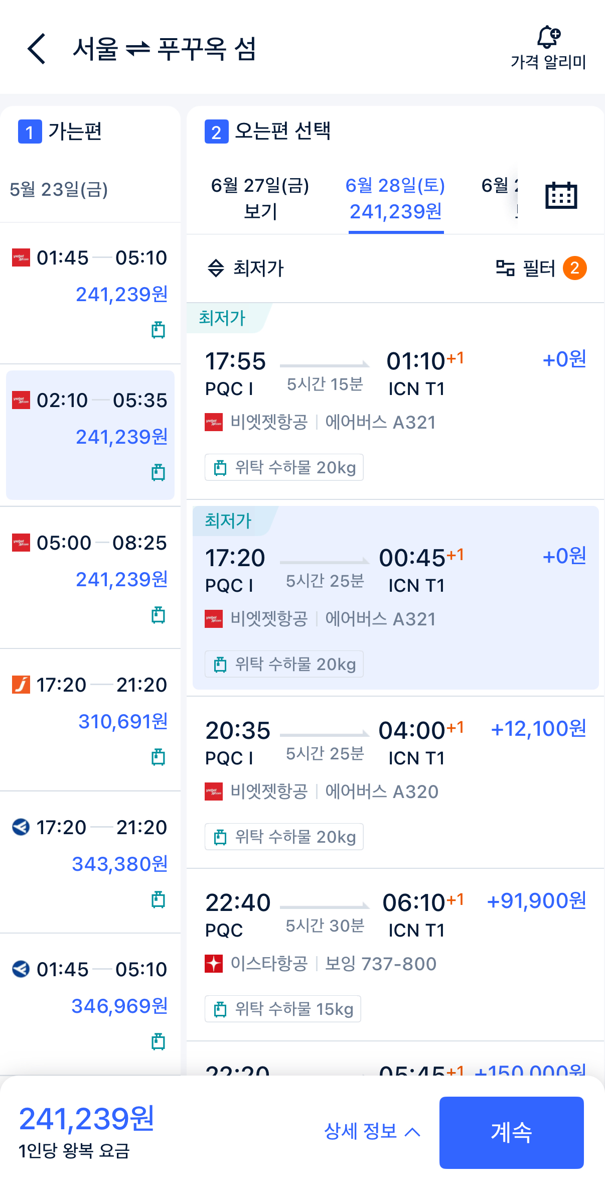 2) 필터 사용하기 (위탁 수하물 포함)