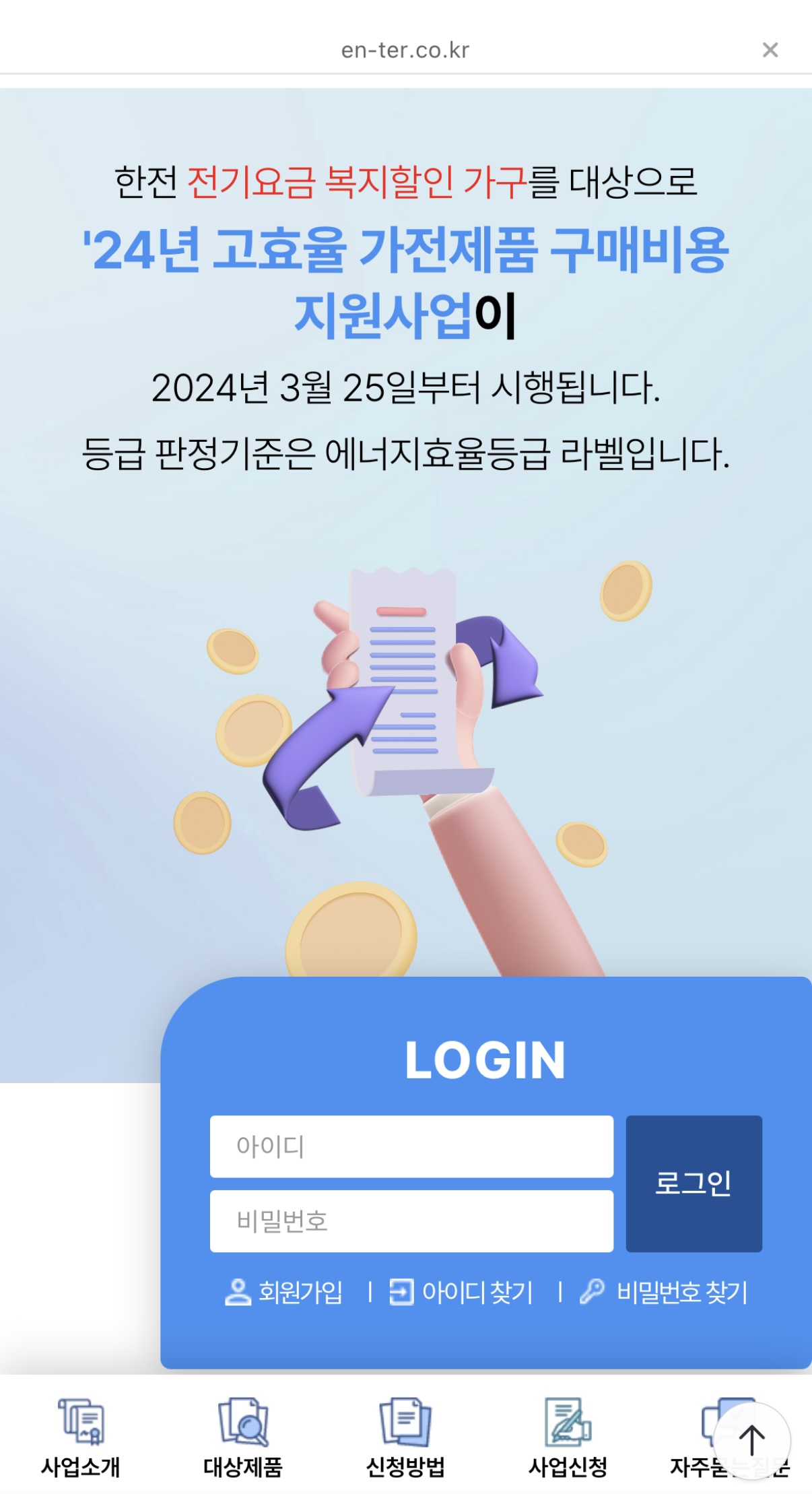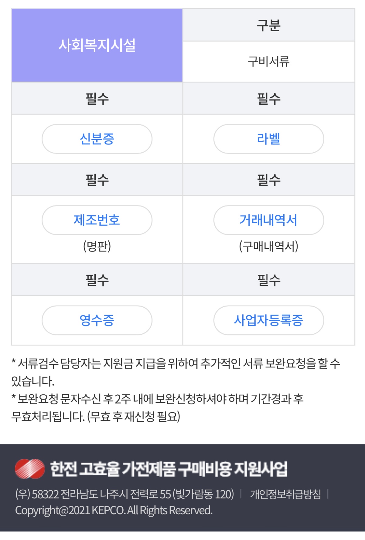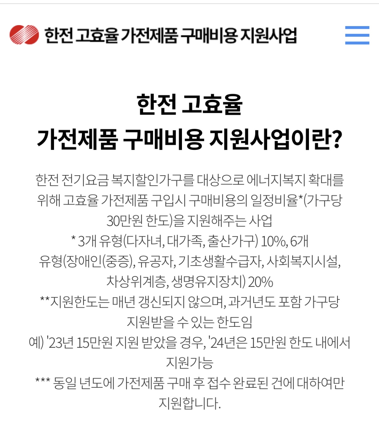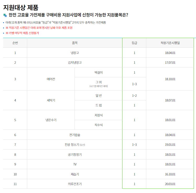 (출처)한전 고효율 가전제품 구매비용 지원사업 홈페이지